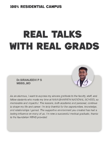 100% RESIDENTIAL CAMPUS REAL TALKS WITH REAL GRADS Dr.SIRANJEEVI P S MBBS.,MD