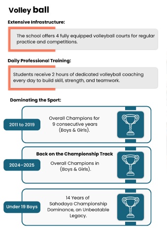 The school offers 4 fully equipped volleyball courts for regular